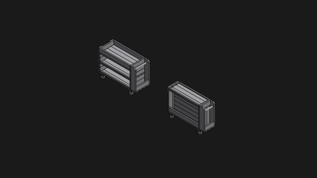 • Trolley 2: theo chiều dọc mình ghép một tấm bảng ở chính giữa dùng treo cưa, 2 bên có 2 hộc dùng để cảo, kẹp.
